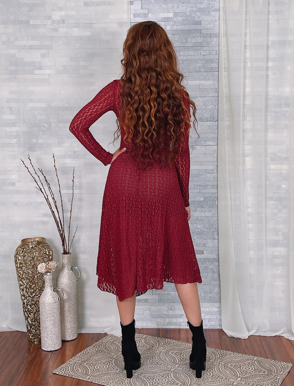 LACE LS MIDI DRESS